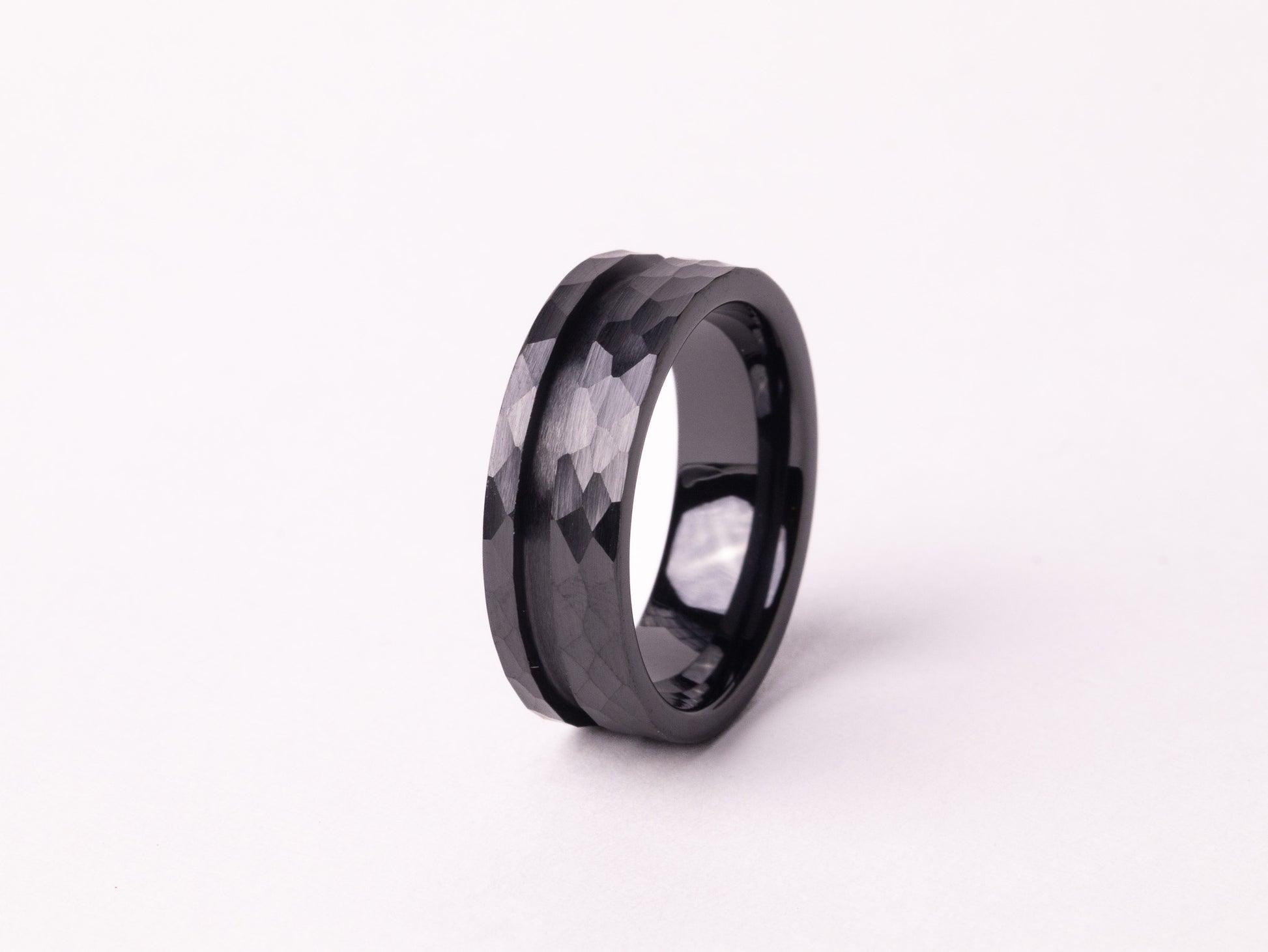 Offset Hammered Black Ceramic Ring Core 8mm/6mm
