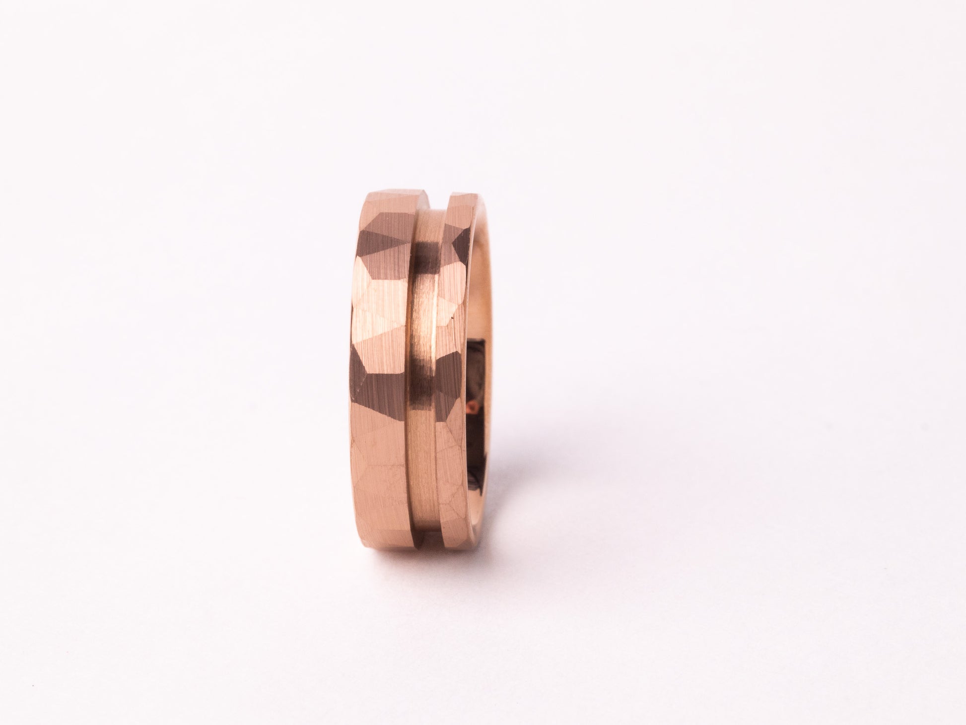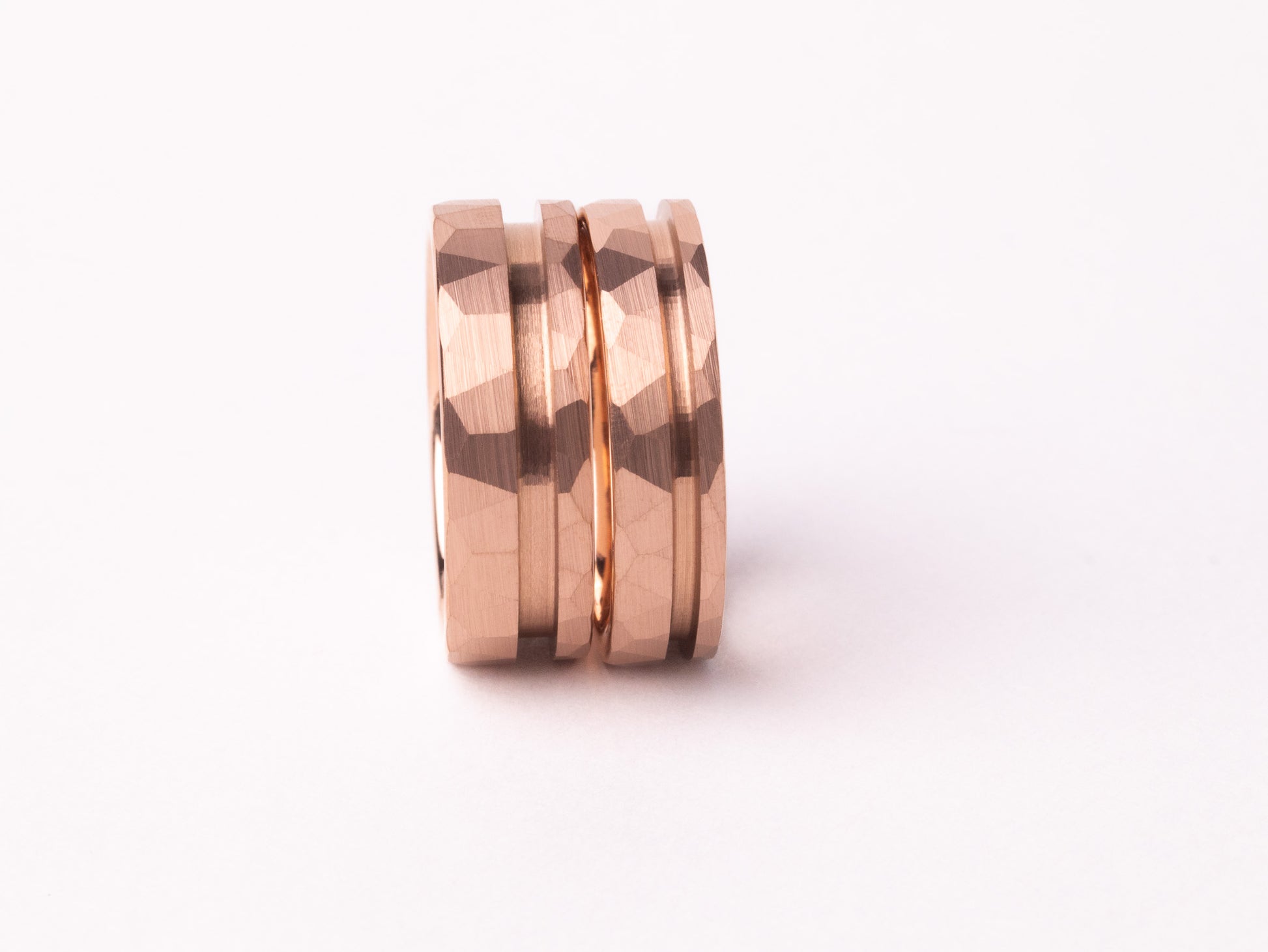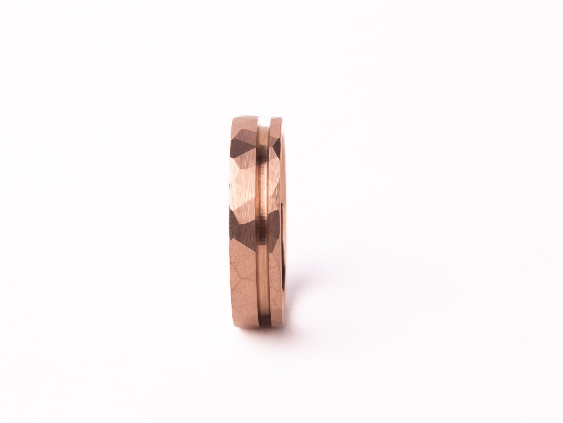 Rose Gold Plated Offset Hammered Tungsten Ring Core